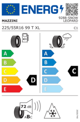 El Snowleopard de Mazzini es un neumático de invierno con una disposición cómoda. Con un diseño optimizado en láminas de sílice y un compuesto de punta para la banda de rodadura. Características: buena tracción en suelo mojado, nieve y hielo, baja resistencia al rodaje.