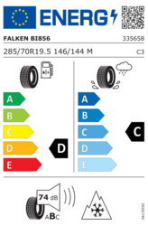 Neumático para ejes motrices, el BI856 de Falken es un neumático de última generación que asegura una tracción óptima independientemente de las condiciones climáticas. Garantizando rendimiento de kilometraje y seguridad gracias a su nueva carcasa y su huella cuadrada más ancha con láminas en 3D en los bloques, el BI856 responde perfectamente a las necesidades de transporte interurbano y regional.